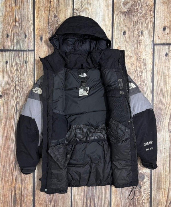 Es súper pesada y abrigada. Rellena de pluma, abrigo para alta montaña.