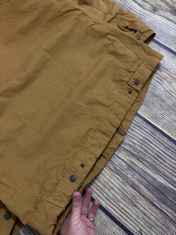 Abrigo con materiales súper resistentes, de lona pesada.