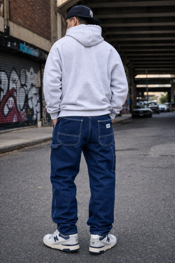 Pantalon pesado y holgado, corte recto.